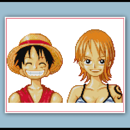 One Piece Cross Stitch Pattern Luffy and Nami