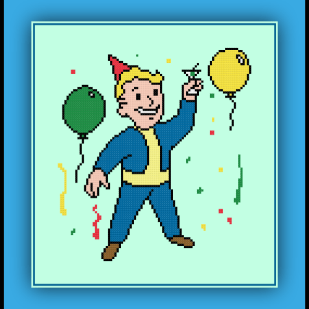 Patreon Only Fallout Party Cross Stitch Pattern Vault Boy